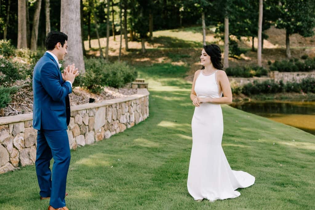 When Thomas saw Hannah for the first time, he was speechless. With her dress train fanned out, he took a moment to take a look at the bride he’d always dream of finding and marrying. It was important that their closest friends and family be with them on their wedding day. Their wedding party played a huge role in supporting them throughout the day, through their ceremony and toasts. Then when the reception started, they definitely brought the party with them. Thomas loves movies and works in media, so their table settings included movie posters from some of his favorite movies. All the groomsmen wore socks from their favorite action movies like Captain America. I am a huge fan of action and sci-fi movies like Star Wars, Harry Potter, and Captain America so I loved seeing these. Thomas’ family flew all the way from Brazil as they wouldn’t miss it for anything. Throughout the day it was important to capture their loved ones celebrating as much as it was to photograph Thomas and Hannah’s love. Greystone Estate wedding venue was the perfect location to host their dream wedding day. The reception building was beautiful and open with a lot of windows which let the perfect amount of natural light in. It overlooked a beautiful lake surrounded by rolling hills which gave us a lot of scenery for portraits of Thomas and Hannah as husband and wife.