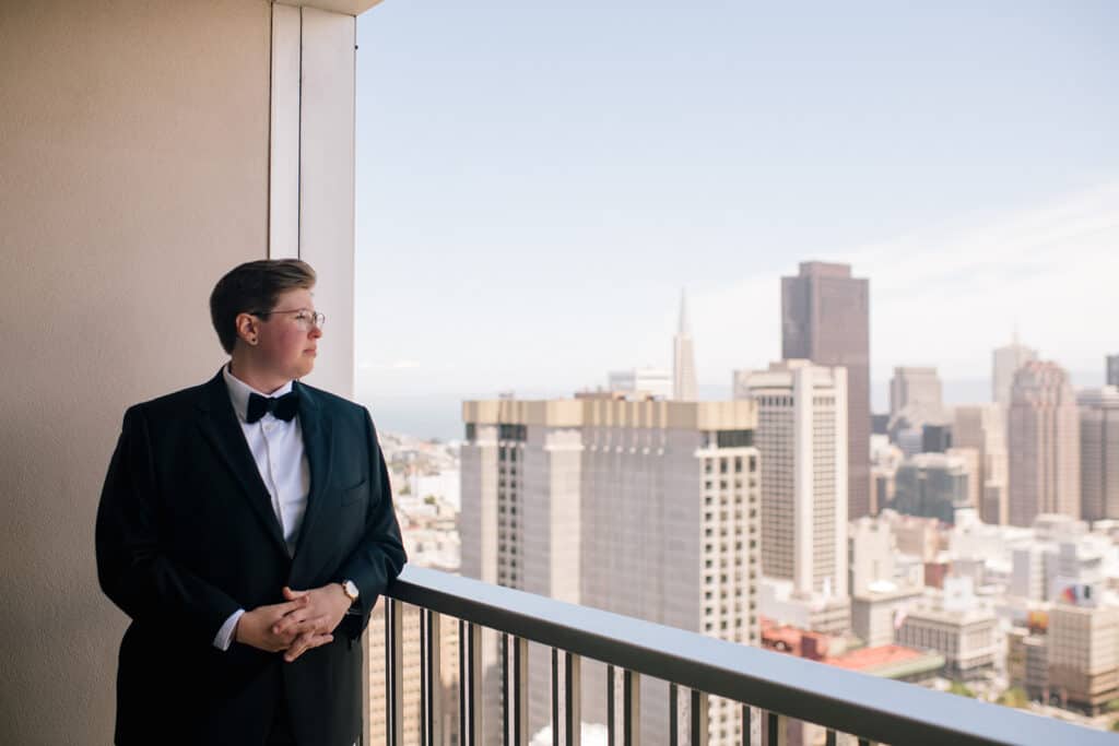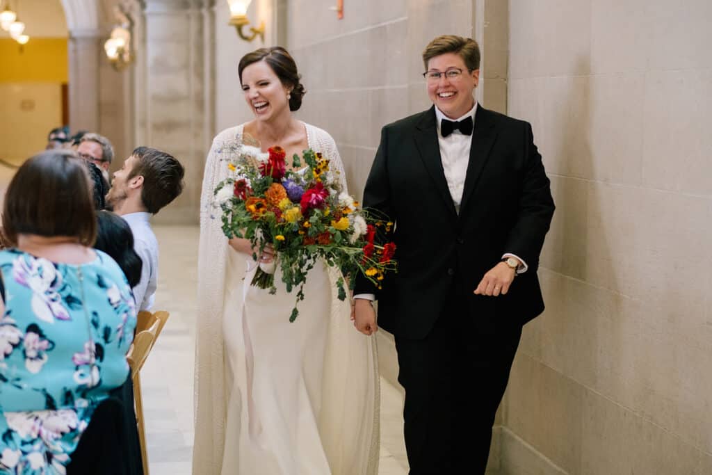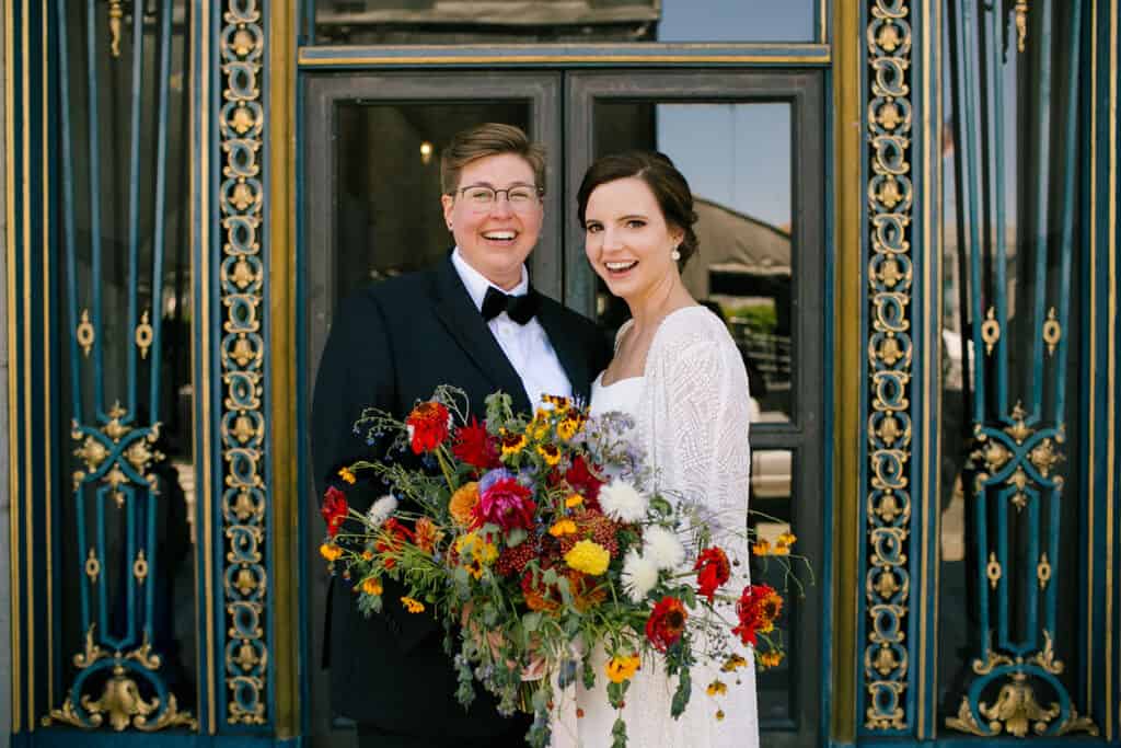 I love when couples choose their venue and vendors with intention. April and Kelsey met in the south, but they moved to the Bay Area together for the community and culture. When it was time to plan their wedding, they scheduled their intimate elopement at the courthouse on the 50th anniversary of the Stonewall Uprising. It was also Pride Weekend, so all of San Francisco was buzzing with symbolism and power.