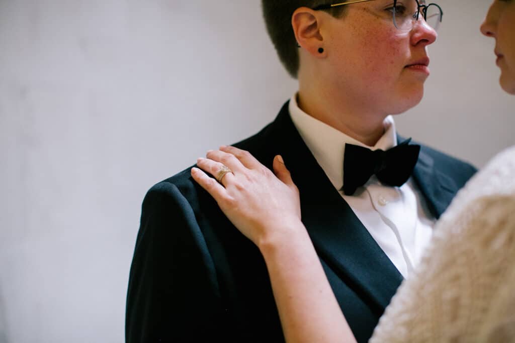April and Kelsey also wanted to make sure all their vendors were LGBTQ+ friendly. I love shooting LGBTQ+ weddings, and because April and I have been friends since college, I was thrilled to be invited to cover their wedding day. They asked a friend to officiate, and they even brought in April’s regular barber to do her wedding day hair. These choices might not mean much to the guests, but it’s so special when couples can work small bits of themselves into the details of the day.