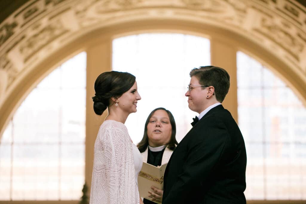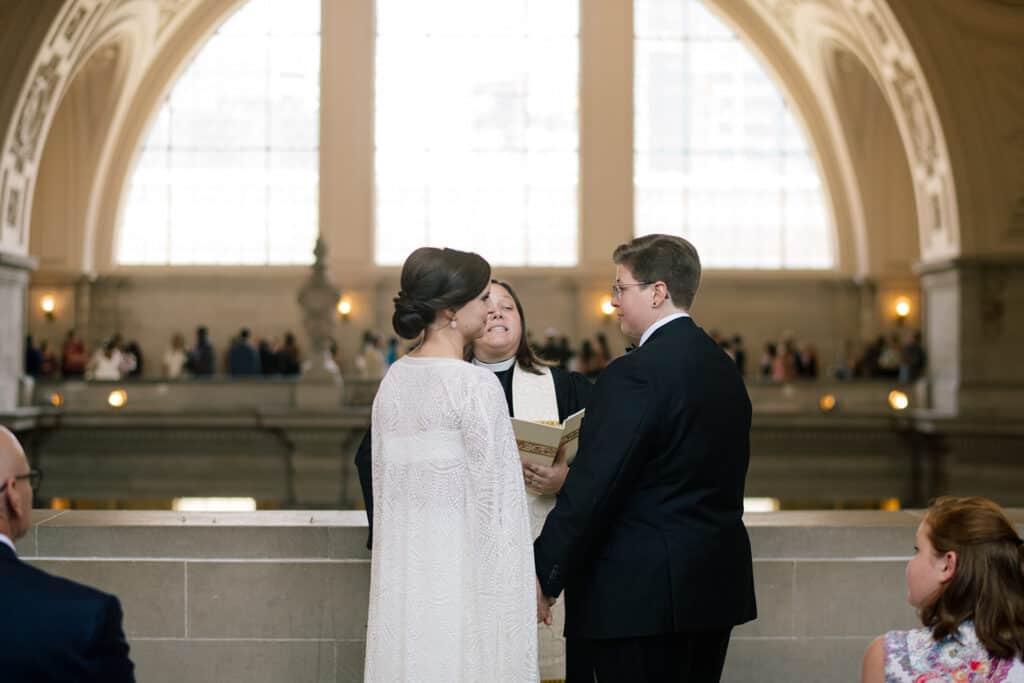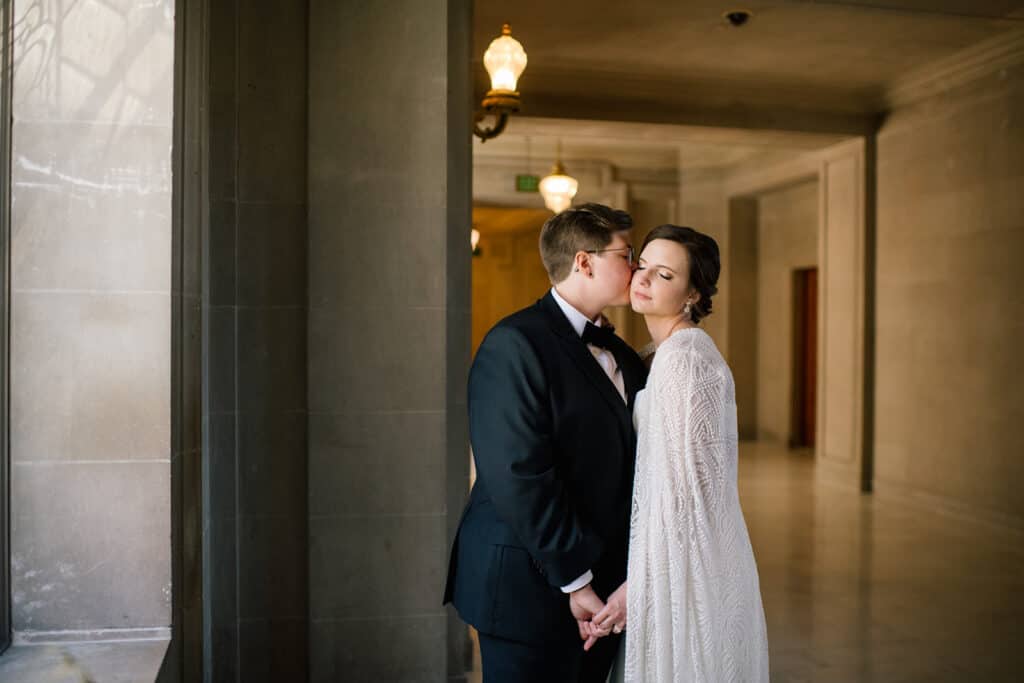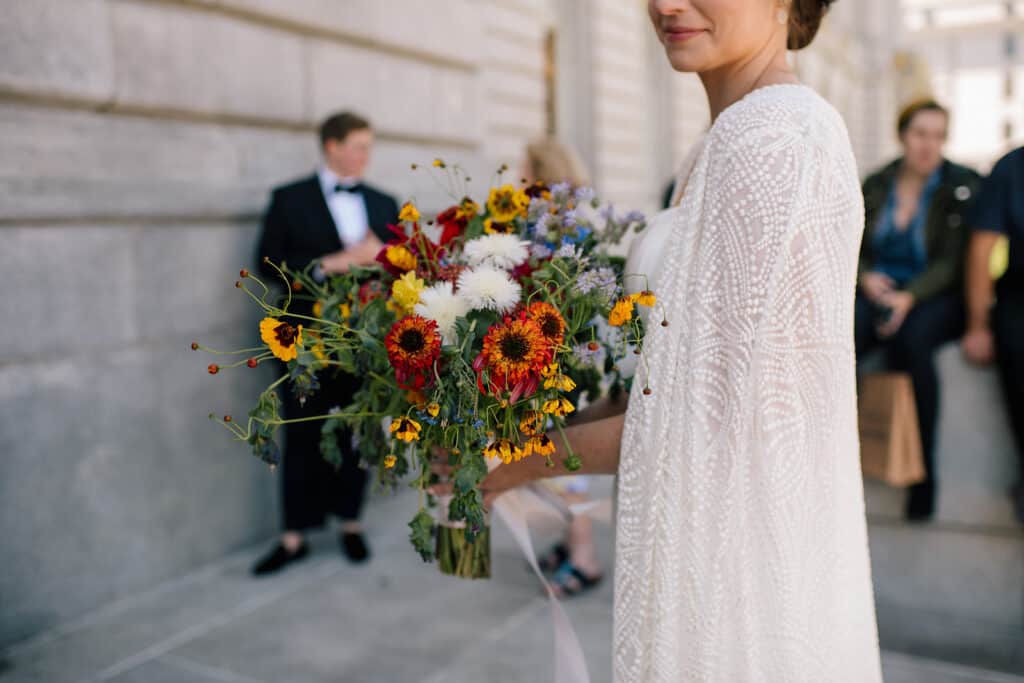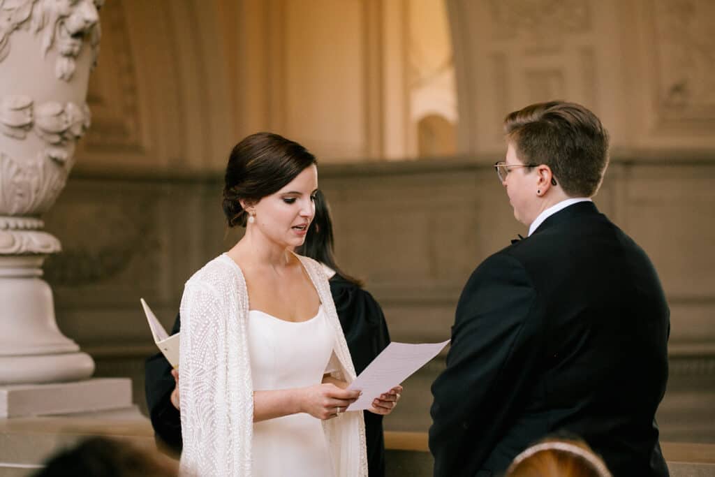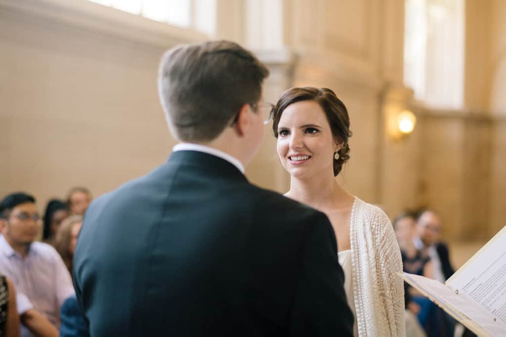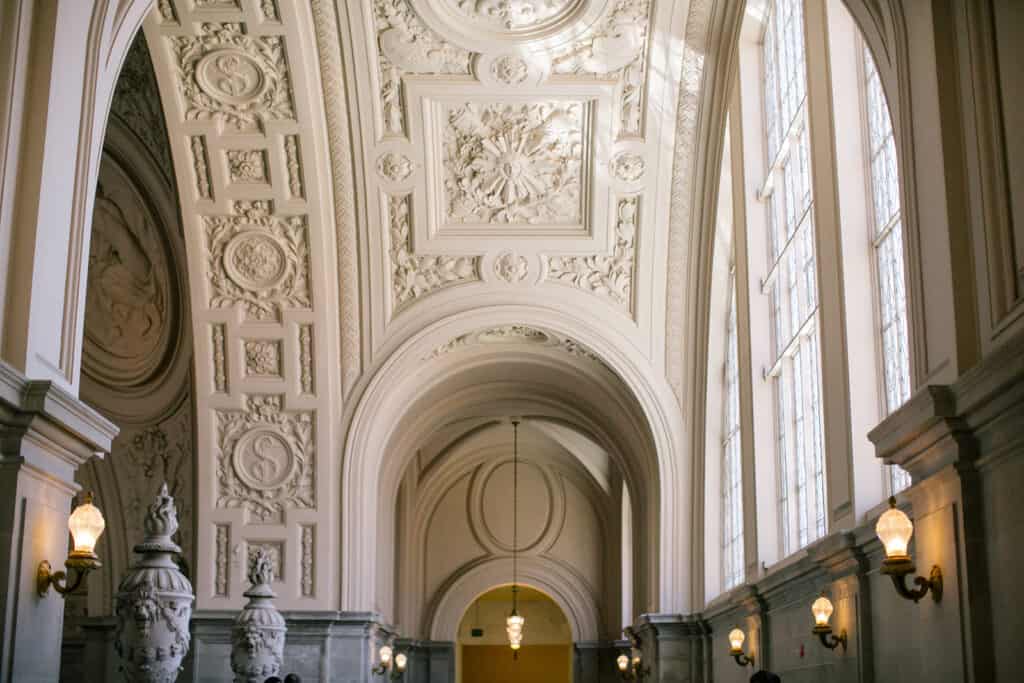 Lucky for us, the San Francisco courthouse is a stunning wedding venue. I love the arches and vintage architecture throughout the space, and the tall, white walls make for a bright, beautiful backdrop.
