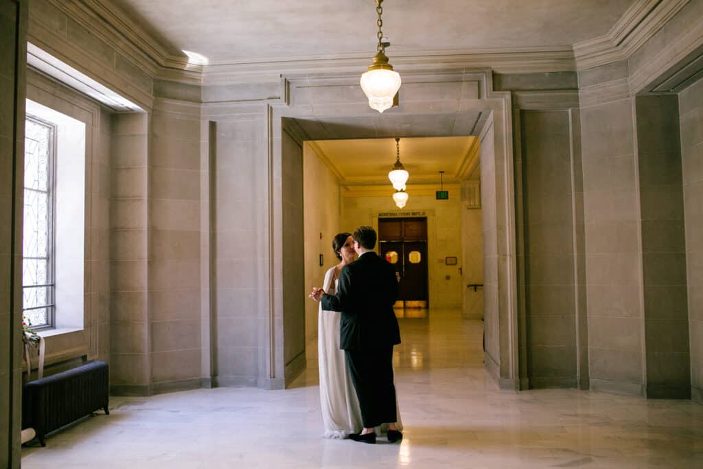 When most people think of a courthouse wedding, they imagine a quick, less-than-special affair with the couple and maybe a witness or two. In my experience, though, courthouse weddings can be really intimate and elevated, especially in the right courthouse!
