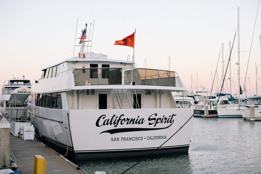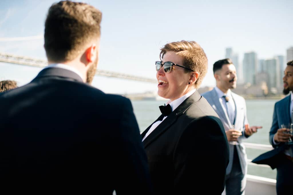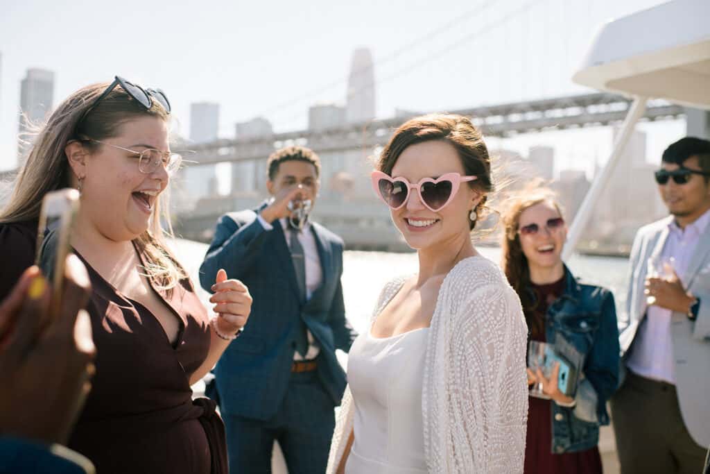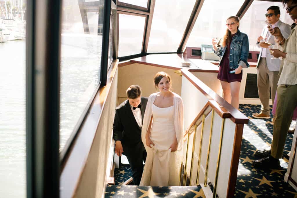 What’s classier than an elevated courthouse wedding? How about a reception on a boat in the bay?