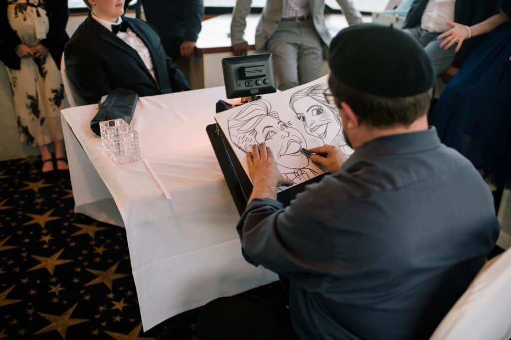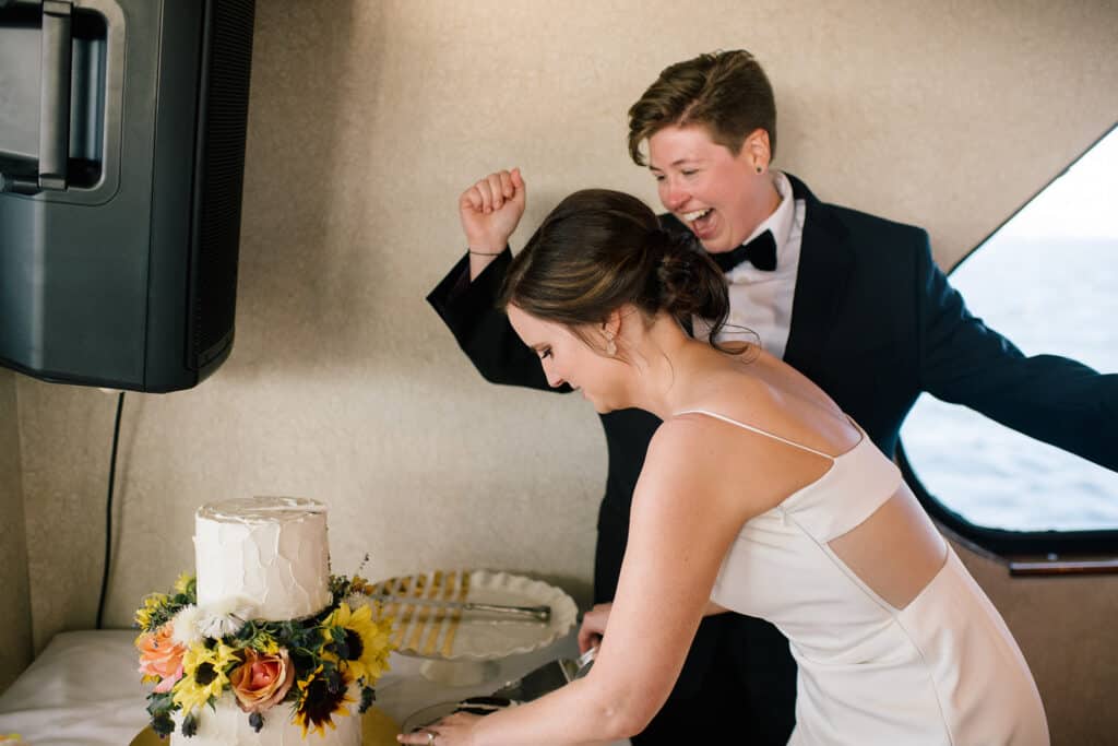 As if an entire boat wasn’t fun enough, the couple also hired a caricature artist to draw portraits of all the guests, which they got to take home as a favor. The food was delicious, the view from the deck was amazing, and everyone had a blast. I think it’s safe to say I won’t be forgetting April and Kelsey’s wedding any time soon.